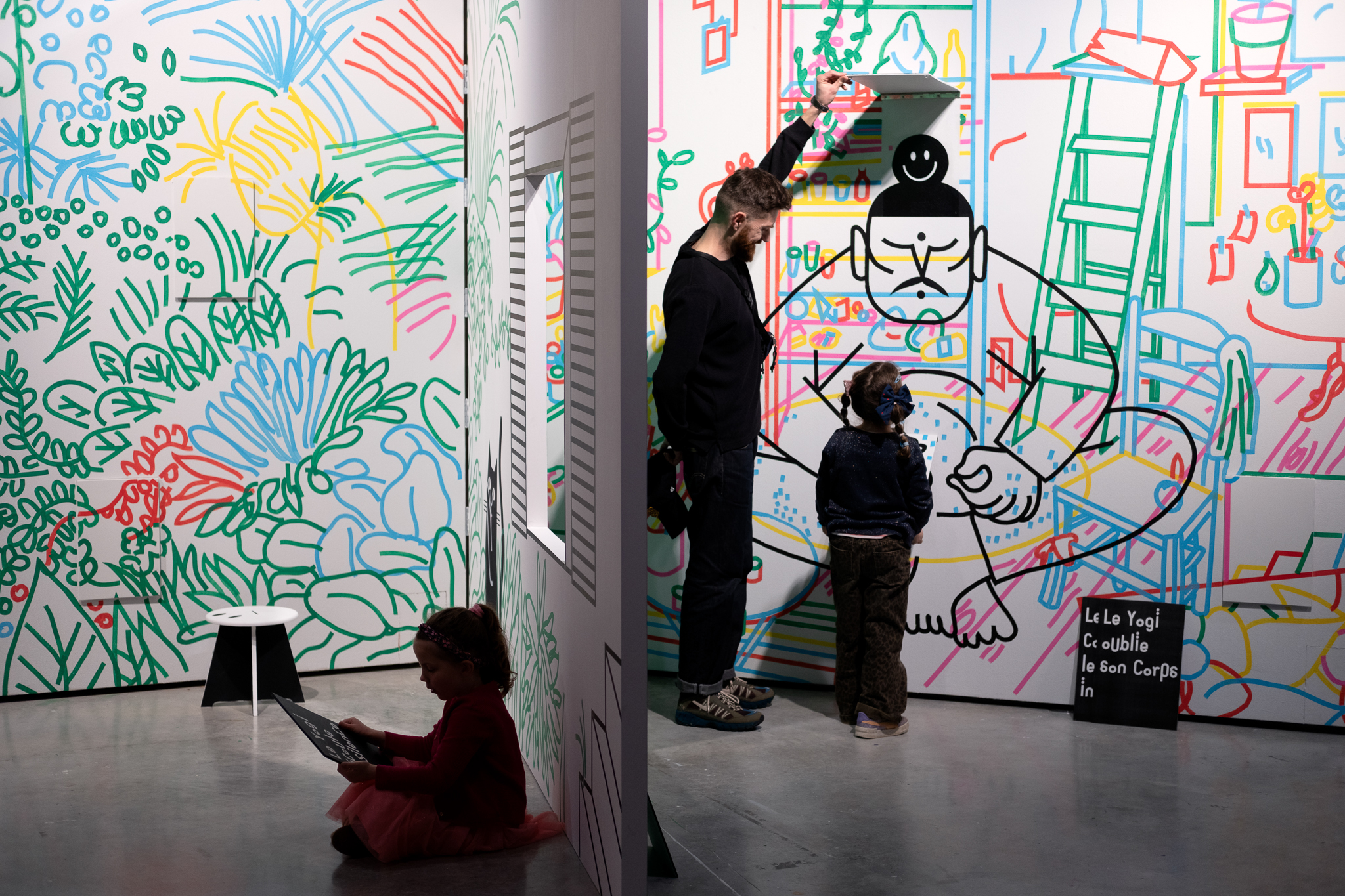Le Chat, le Sosie, l’Artiste, Bébé, le Yogi… chaque figure ouvre la porte à une expérience différente, entre imagination, jeu et création. Masques, puzzles, mots, fenêtres, murs à dessiner ou fabrication de petits livres composent ce parcours conçu comme un terrain d’aventure sensible et graphique. L’exposition, portée aussi par le travail scénographique de Grégoire Romanet, confirme le succès d’un rendez-vous devenu incontournable pour le jeune public dans le Grand Est.