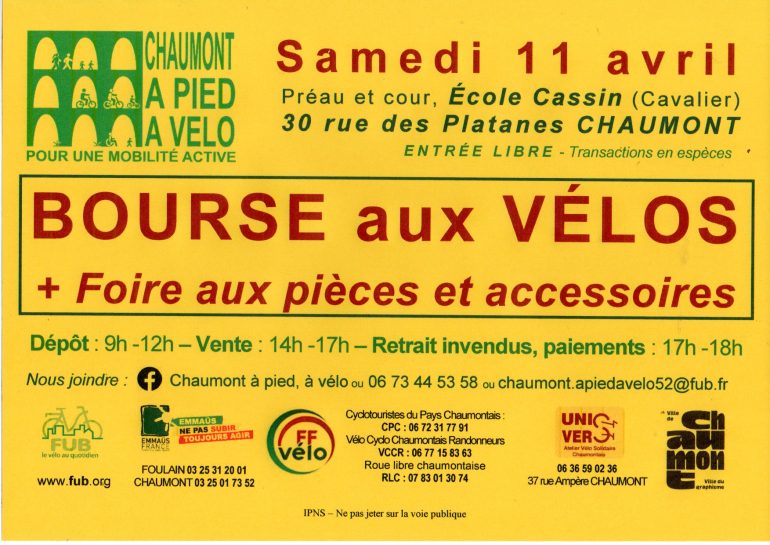 Comme lors des précédentes éditions, plusieurs partenaires seront présents ou associés à l’opération. L’atelier vélo solidaire chaumontais Unis Vers sera sur place l’après-midi pour proposer de petits réglages et donner des conseils. De leur côté, Emmaüs et les Restos du Cœur récupéreront les invendus que les vendeurs ne souhaiteraient pas reprendre, afin de leur offrir une seconde vie.