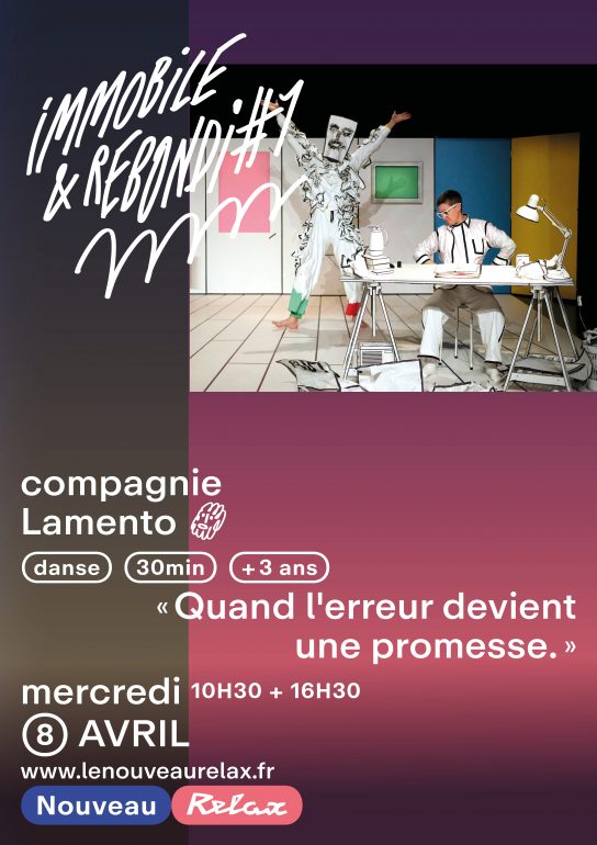 Changement d’ambiance mercredi 8 avril avec Immobile & Rebondi #1, de la compagnie Lamento, proposé à 10h30 et 16h30, avec des séances scolaires en complément. Pensé pour les enfants dès 3 ans et les familles, ce spectacle de danse raconte la rencontre entre une illustratrice en panne d’inspiration et un personnage né de ses dessins ratés. À travers ce duo, la scène devient un terrain de jeu graphique et chorégraphique où l’erreur se transforme en élan créatif. Entre humour, poésie et fantaisie visuelle, le spectacle prolonge d’ailleurs l’univers de Betty Bone, également visible au Signe. À noter qu’un goûter est offert aux enfants à 16h, sur réservation.