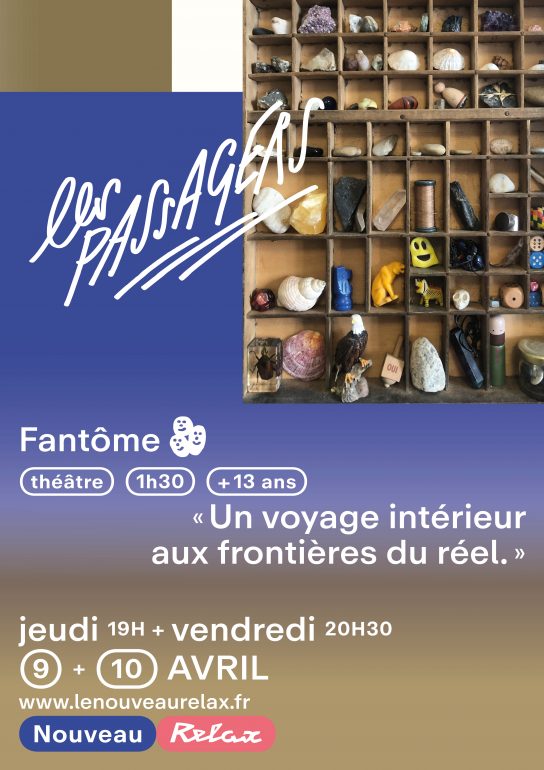 Le jeudi 9 avril à 19h puis le vendredi 10 avril à 20h30, place au théâtre avec Les passagers – Chapitre I : La rencontre, porté par Fantôme, artiste associé au Nouveau Relax. Dans ce spectacle maison, accueilli en studio et conseillé à partir de 13 ans, Antoine Cegarra s’appuie sur les paroles recueillies auprès de dizaines de personnes pour donner naissance à un récit choral incarné par un seul acteur. Le temps, la mémoire, le réel et l’imaginaire s’y entremêlent dans un théâtre d’atmosphère, sensible et vertigineux, qui invite le spectateur à se laisser porter par les voix et les mystères du monde.