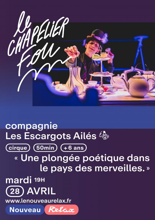 Enfin, le mardi 28 avril à 19h, Le Chapelier Fou, de la compagnie Les Escargots Ailés, viendra clôturer ce mois d’avril avec une proposition familiale dès 6 ans. Librement inspiré de l’univers de Lewis Carroll, ce spectacle de cirque mêle fil, marionnettes, musique en direct et personnages décalés dans une relecture poétique de la célèbre scène du thé. Déjà complet, ce rendez-vous affiche un bel engouement, même s’il reste possible de s’inscrire sur liste d’attente en cas de désistement.