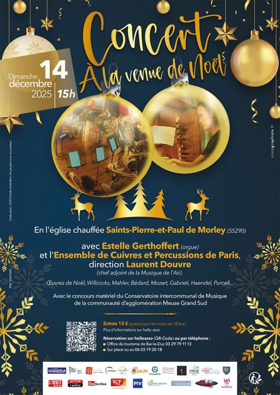 Ce rendez-vous est programmé pour le dimanche 14 décembre 2025 à 15h00. Il se tiendra dans le cadre magnifique de l’église Saints-Pierre-et-Paul de Morley (55290), qui sera spécialement chauffée pour accueillir le public dans les meilleures conditions.