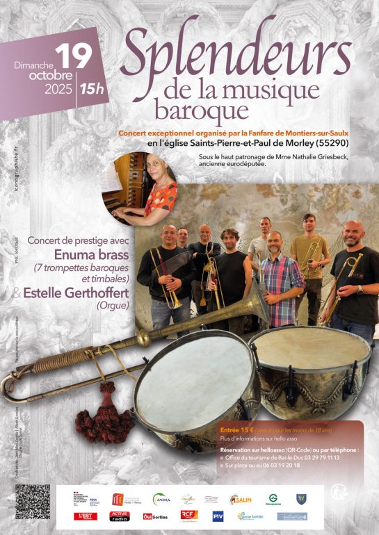 Le dimanche 19 octobre 2025 à 15 h, l’église saints-Pierre-et-Paul de Morley s’apprête à accueillir un événement musical de très haute volée : le concert “Splendeurs de la musique baroque”. Organisé par la Fanfare de Montiers-sur-Saulx, ce récital promet d’être un moment unique, mettant à l’honneur la somptuosité de l’époque baroque à travers une instrumentation rare et éclatante.