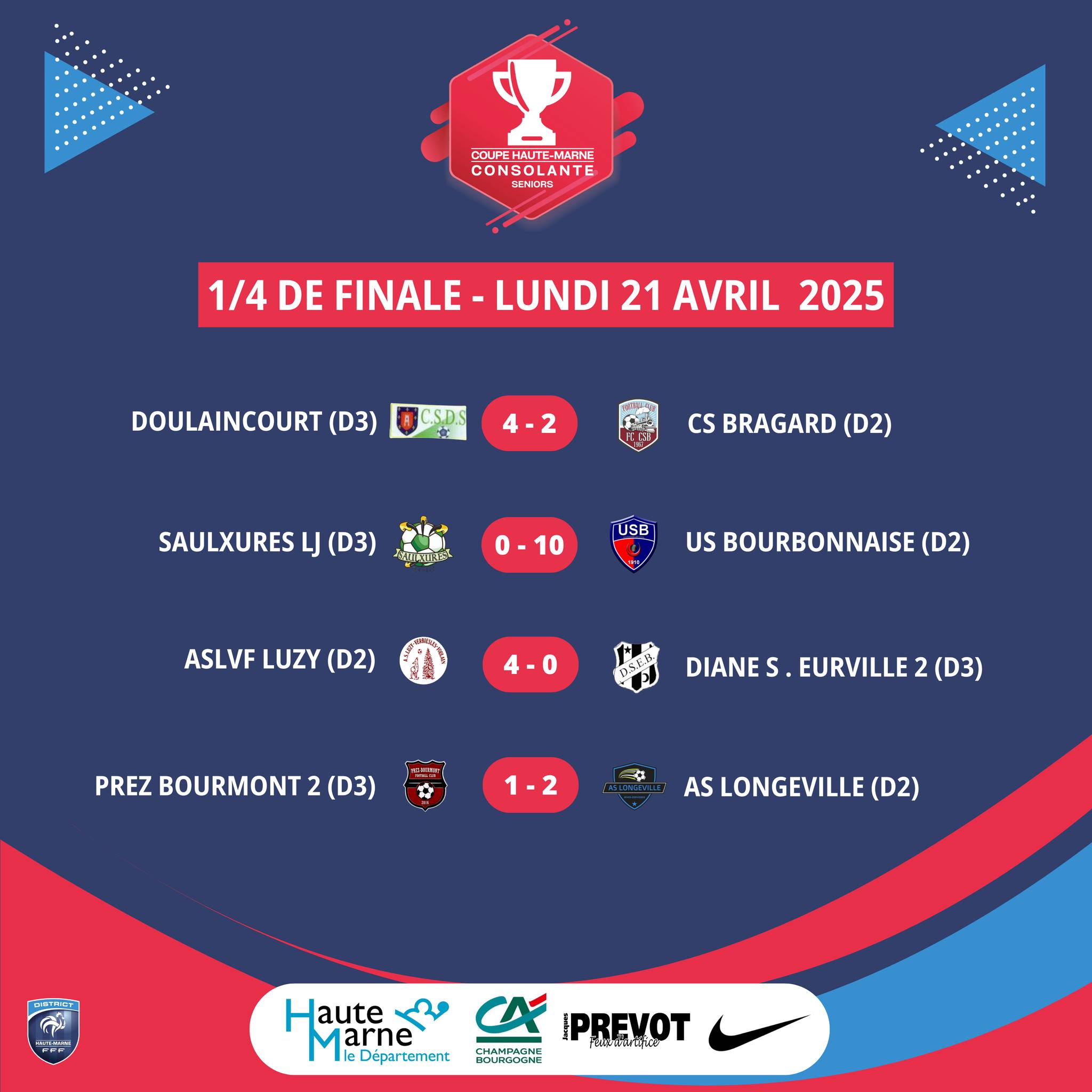 Coupe de Haute-Marne : Résultats des 1/4 de finale