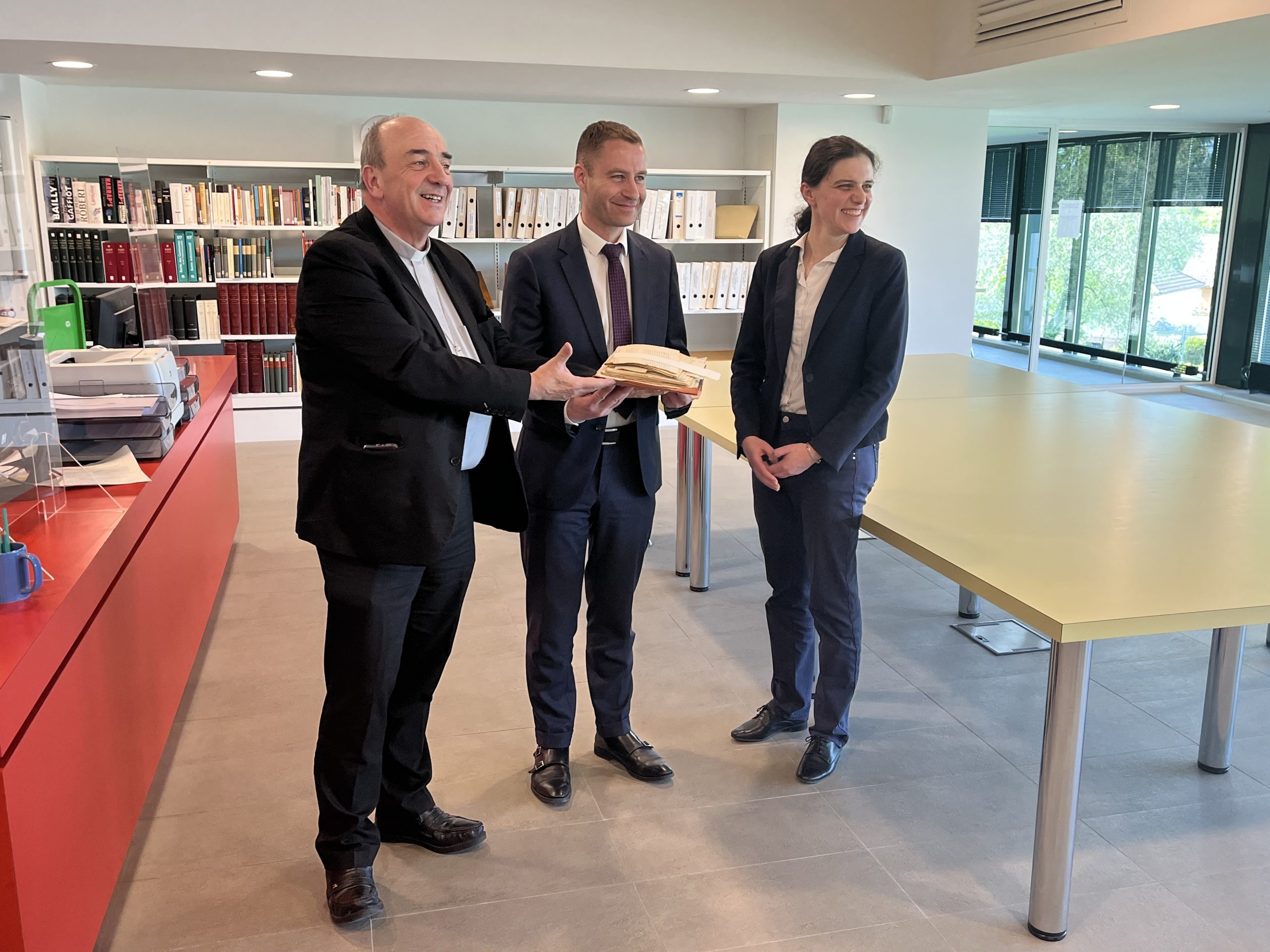 C’est en ce jeudi 4 mai 2023 que les archives du Grand Pardon ont été remises aux Archives départementales de la Haute-Marne, à Chaumont, par l’Evêque de Langres Monseigneur Joseph de Metz-Noblat.
