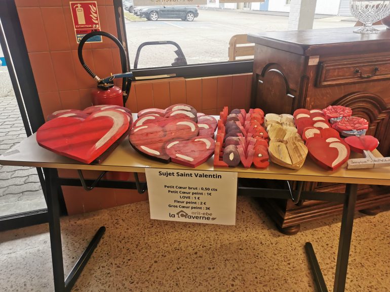 Une belle réussite pour l’atelier bois puisque les commandes ne cessent, des objets sur mesure, à la demande, que ce soit pour les particuliers, les professionnels et les collectivités, des objets thématiques que ce soit pour noël où nous avons eu la possibilité de voir les créations dans les communes de Saint-Urbain, Nomécourt, Villiers-le-Sec … Mois de février, c’est le mois de l’amour, de la Saint-Valentin et c’est la thématique de ce début de mois avec des créations à découvrir en boutique, mais également en commande déjà effectuée des meubles sur mesure que vous pourrez également découvrir dans les boutiques d’ARIT ABI 52 (voir photo ci-dessous), bref la créativité ne manque pas !
