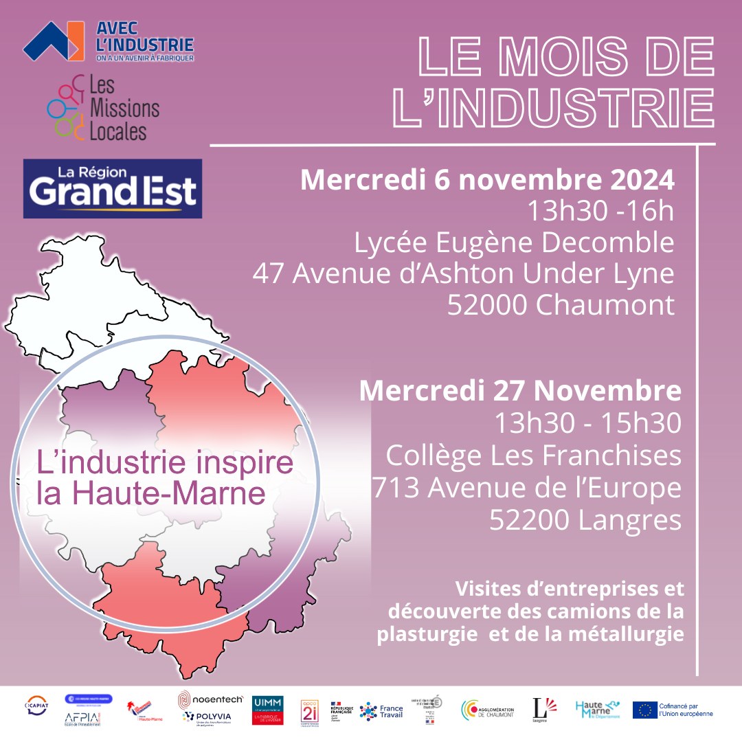 Pour les missions locales de Chaumont, de Langres, France Travail ou encore les différentes Opco, le mois de novembre rimait avec industrie, car celui-ci est désigné comme étant le Mois de l’Industrie. Un premier forum avait été organisé le 6 novembre dernier au lycée Decomble de Chaumont, destiné à tous les publics, alors qu’un second est prévu cette fois-ci à Langres, au collège des Franchises, ce 27 novembre, où différentes entreprises industrielles seront présentes, des organismes de formations, etc. Durant tout le mois également, des visites d’entreprises ont été organisées comme à l’entreprise Rostan de Langres ou encore Entremont de Montigny-le-Roi. Zoom en podcast.