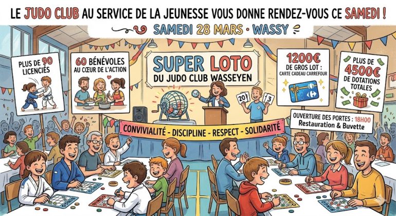 Ce samedi 28 mars, le Dojo de Wassy délaisse les kimonos pour les cartons numérotés. Le Judo Club Wasseyen organise son grand loto annuel, un événement solidaire et festif devenu incontournable pour les habitants et les licenciés.
