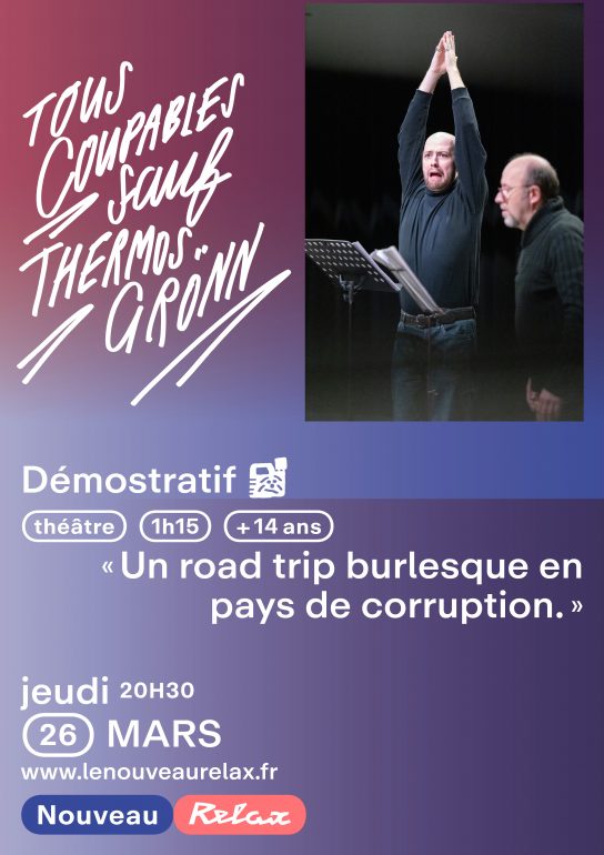 Le jeudi 26 mars à 20h30, le Nouveau Relax accueille Tous coupables sauf Thermos Grönn, une création de Romane Nicolas mise en scène par Sacha Vilmar.