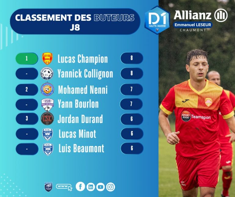 Départemental 1 haut-marnais 2025/2026, Journée 9. Après cette 9e Journée, un véritable bloc de quatre équipes se détache en haut de classement, à commencer par leader, le FC Bologne confirme sa grande forme en s’imposant contre le CS Chalindrey (2-0). Derrière, les réserves de l’AS Sarrey/Montigny, du FC Saints-Geosmes et de l’USIB Vaux-sur-Blaise ont aussi engrangé les trois points en gagnant respectivement face au FC Joinville/Vecqueville (4-1), contre le Sud Champagne FC (2-1) et l’US Montier-en-Der (3-1). Tous les résultats ci-dessous. A noter que Yannick Collignon (SCFC) rejoint Lucas Champion (SRN) en tête du classement des buteurs avec 8 réalisations.