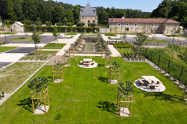 L’aménagement des espaces d’accueil du Château du Grand Jardin à Joinville intègre un parking de 91 places dans un motif inspiré des jardins Renaissance, avec un verger en axe de perspective et une marqueterie de sols. Sobre et élégant, le projet valorise le patrimoine tout en facilitant l’entretien, renforçant ainsi l’attractivité touristique et l’accessibilité du site.