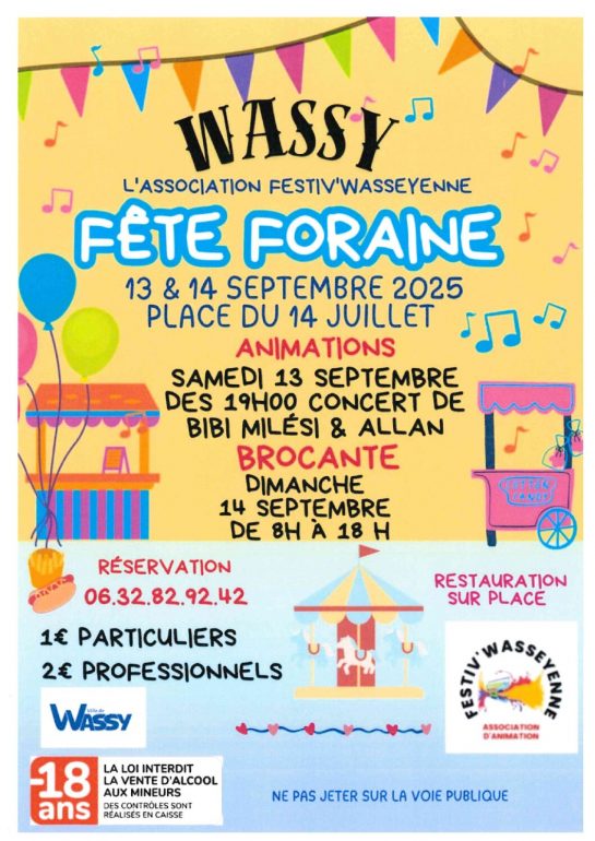 En résumé, ce week-end des 13 et 14 septembre 2025 sera un moment fort pour la ville de Wassy, orchestré par l’association Festi’Wasseyenne, alliant le dynamisme de la fête foraine et le charme d’une brocante. Une sortie idéale en famille ou entre amis pour terminer l’été en beauté.